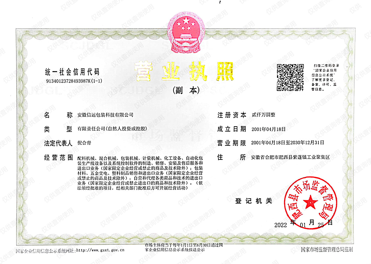 安徽信遠(yuǎn)包裝科技有限公司成立于2001年,座落于國(guó)家科學(xué)中心城市——合肥,毗鄰美麗的紫蓬山國(guó)家森林公園,占地40畝,擁有研發(fā)中心和多個(gè)制造裝配車(chē)間,是一家專(zhuān)業(yè)從事粉體、顆粒體、流體等多形態(tài)物料的自動(dòng)配料、混合、計(jì)量、包裝、裝箱、碼垛等自動(dòng)化生產(chǎn)線(xiàn)的研發(fā)、設(shè)計(jì)、制造、銷(xiāo)售和服務(wù)為一體的國(guó)家高新技術(shù)企業(yè)。公司專(zhuān)注為肥料、化工、獸藥、飼料、食品等行業(yè)企業(yè)提供一體化生產(chǎn)設(shè)備和一站式技術(shù)服務(wù)。