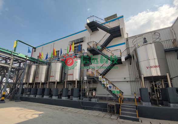 液體氨基酸水溶肥生產設備是信遠科技結合國內外液體水溶肥設備制造經驗和客戶使用反饋情況,研發(fā)制造了全新一代集配料、混合、攪拌、螯合、成品儲料、灌裝、碼垛于一體全自動生產設備。設備自動化程度高、結構緊湊,節(jié)省人工,生產效率高、操作簡單、容易維護、投資性價比高,設備采用工業(yè)級不銹鋼,防腐性能強,設備使用壽命長??缮a大量、中量、微量元素等多種類型的液體水溶肥。信遠科技公司可根據客戶的產能需求、廠房結構/面積、產線配置、投資預算提供液體水溶肥不同的生產解決方案。