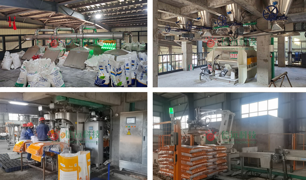 信遠(yuǎn)科技為廣大肥料行業(yè)客戶推薦的這套年產(chǎn)1-2萬噸的固體粉劑水溶肥設(shè)備配置方案,適用于充填容量為5-50kg的編織袋、PP/PE袋,可以包裝大量元素水溶肥、中量元素水溶肥、微量元素水溶肥、含氨基酸水溶肥、含腐植酸水溶肥、含黃腐酸鉀水溶肥等不同配方的固體粉劑水溶肥產(chǎn)品。該套方案的前端和后端均采用了全自動化的設(shè)備系統(tǒng),把復(fù)雜繁重的作業(yè)工段交給設(shè)備來完成,減少了人工成本、降低了勞動強度、提高了產(chǎn)品配混的標(biāo)準(zhǔn)化和理包碼垛搬運的效率。