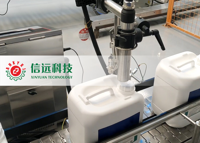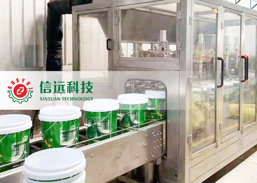 信遠科技桶裝液體全自動灌裝機組,由灌裝機和上蓋旋蓋機/上蓋壓蓋機組成。可以灌裝5-30L范圍之間的桶裝液體物料,生產(chǎn)企業(yè)可以根據(jù)自己的需要,選擇不同型號的灌裝機和配套輔機。這套機組設(shè)備采用不銹鋼材質(zhì)設(shè)計制造,適用于食品、化工、醫(yī)藥等行業(yè)不帶氣體的流體、半流體物料的計量灌裝,具有自動完成進桶、定位、灌裝、出桶、上蓋、旋蓋/壓蓋、噴碼等一系列功能。