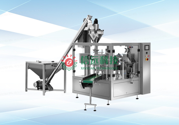 信遠(yuǎn)科技農(nóng)藥粉劑全自動(dòng)旋轉(zhuǎn)式給袋包裝機(jī)組,是由密閉螺旋提升機(jī)、螺旋計(jì)量機(jī)、多工位旋轉(zhuǎn)式給袋包裝機(jī)和成品輸送機(jī)組成??梢园b單袋克重在30-5000g范圍之間的粉狀物料,生產(chǎn)企業(yè)可以根據(jù)自己的需求選擇不同的包裝機(jī)型號(hào)。這套機(jī)組設(shè)備適合無粘性粉料的定量包裝,具有自動(dòng)完成送料、計(jì)量、給袋、充填、封口、打印、計(jì)數(shù)、輸送等一系列功能,是食品、化工、醫(yī)藥等行業(yè)提高包裝生產(chǎn)效率,打造無塵環(huán)保車間,提升包裝檔次的新型自動(dòng)化裝備。