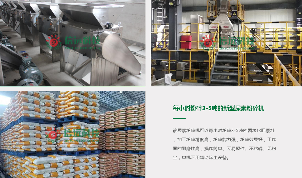 安徽信遠(yuǎn)包裝科技有限公司研發(fā)制造的SG800S型對(duì)輥式尿素粉碎機(jī),已經(jīng)在中化、云天化、祥云、開(kāi)門(mén)子、華強(qiáng)、新洋豐、云圖、金正大、開(kāi)磷、六國(guó)等國(guó)內(nèi)眾多肥料大廠的成套生產(chǎn)線中配套使用。該型尿素粉碎機(jī)可以廣泛應(yīng)用在肥料廠高氮肥、沖施肥、水溶肥等不同品類(lèi)的生產(chǎn)上,無(wú)論是生產(chǎn)固體粉劑粉末肥料產(chǎn)品,還是生產(chǎn)液體肥產(chǎn)品,對(duì)于把顆粒原料粉碎成粉末,都離不開(kāi)尿素粉碎機(jī)這種設(shè)備。歡迎有需要的用戶(hù)聯(lián)系咨詢(xún)信遠(yuǎn)科技。