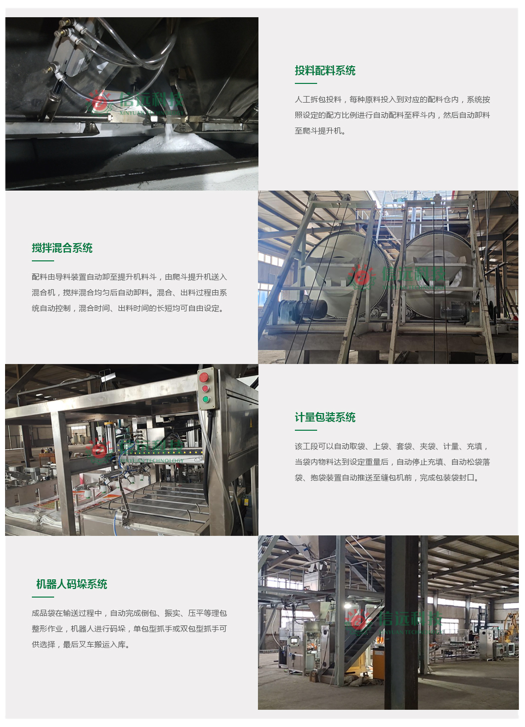 年產5-10萬噸摻混肥設備配置方案,生產模塊工段為:人工投料 + 自動配混 + 半自動包裝 + 自動縫包 + 自動理包 + 機器人碼垛。該設備方案是一套“中配版”的自動化生產設備,只有投料和取袋套袋環(huán)節(jié),需要人工參與,其他環(huán)節(jié)均為全自動化作業(yè),適合中小型規(guī)模的肥料生產企業(yè),或對產能產量有一定要求的肥料生產廠家選配購置。該套設備可以裝置在有一定層高的單層廠房內,使用面積300平方米以上,設備投資金額在50萬元左右,速度快、精度高、產量大、占地少、自動化程度高、操作簡便、可靠耐用、易于安裝維護。