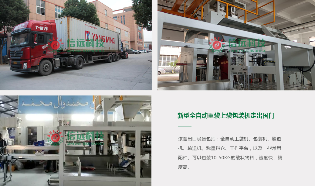 該套出口設(shè)備包括:全自動(dòng)上袋機(jī)、包裝機(jī)、縫包機(jī)、輸送機(jī)、稱重料倉(cāng)、工作平臺(tái),以及一些常用配件??梢园b10-50kg的散狀物料,速度快、精度高。可以自動(dòng)完成取袋、上袋、套袋、夾袋、計(jì)量、充填、落袋、輸送、封口等一體化包裝作業(yè)。在幫助客戶增產(chǎn)增量、減少用工的同時(shí),保證了產(chǎn)品質(zhì)量和生產(chǎn)標(biāo)準(zhǔn)化。