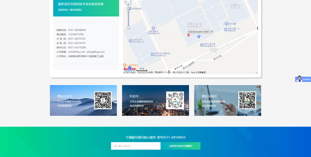 官方主站首頁頂部、底部設(shè)置有信遠公司官方微信公眾號、微信視頻號和抖音號二維碼,訪客可以使用手機“掃一掃”進入信遠公司社交與短視頻賬號,并關(guān)注該賬號,訪客將會體驗到信遠公司及時的動態(tài)信息推送服務(wù)。