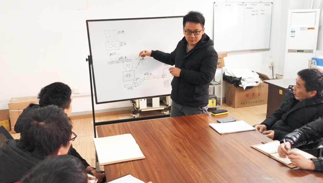集成化的成套生產(chǎn)線設(shè)備作為信遠(yuǎn)公司的重點(diǎn)業(yè)務(wù),有著復(fù)雜的模塊聯(lián)動(dòng)和嚴(yán)苛的技術(shù)標(biāo)準(zhǔn),要完美解決這些難題,開發(fā)設(shè)計(jì)出精確的電氣運(yùn)行數(shù)據(jù)是核心技術(shù)。王聲根作為電氣工程方面的專家,每項(xiàng)業(yè)務(wù)都能根據(jù)產(chǎn)品規(guī)格把生產(chǎn)精度控制在客戶要求之內(nèi)。他和技術(shù)團(tuán)隊(duì)先后研發(fā)的配方肥生產(chǎn)控制系統(tǒng)、超微細(xì)粉重袋上袋計(jì)量充填包裝技術(shù)、全自動(dòng)機(jī)械手裝箱控制技術(shù)、全自動(dòng)制袋包裝機(jī)等新型技術(shù),已在肥料、化工、食品、飼料、獸藥等領(lǐng)域廣泛應(yīng)用。