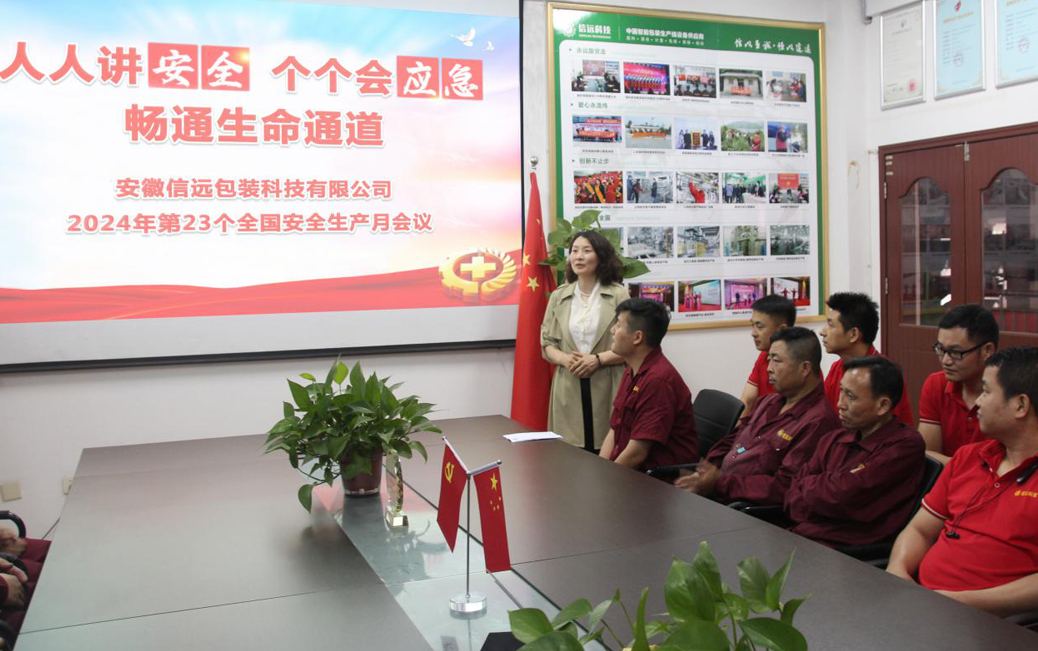 今年6月是第23個(gè)全國(guó)“安全生產(chǎn)月”,主題是“人人講安全、個(gè)個(gè)會(huì)應(yīng)急——暢通生命通道”。為增強(qiáng)員工的安全意識(shí)和應(yīng)急能力,日前,安徽信遠(yuǎn)包裝科技有限公司組織各部門召開2024年“安全生產(chǎn)月”專題會(huì)議,要求公司各部門以習(xí)近平新時(shí)代中國(guó)特色社會(huì)主義思想為指導(dǎo),深入學(xué)習(xí)宣傳貫徹黨的二十大精神和習(xí)近平總書記關(guān)于安全生產(chǎn)重要論述,加強(qiáng)組織領(lǐng)導(dǎo),精心落實(shí)部署要求,確保把安全生產(chǎn)工作抓緊抓好抓出成效。