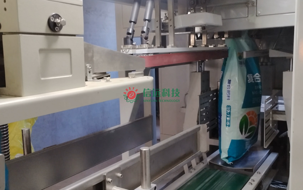 安徽信遠(yuǎn)包裝科技有限公司設(shè)計(jì)制造的全自動(dòng)包裝碼垛生產(chǎn)線設(shè)備,是一套重袋包裝碼垛系統(tǒng),由上袋機(jī)、包裝機(jī)、縫包機(jī)、噴碼機(jī)、輸送理包系統(tǒng)、碼垛機(jī)器人和軌道托盤庫等裝置組成,可以自動(dòng)完成取袋、上袋、開袋、套袋、夾袋和計(jì)量充填,袋內(nèi)重量達(dá)到設(shè)定值時(shí),自動(dòng)停止充填并松袋落袋,抱袋裝置自動(dòng)推送至縫包機(jī)前,完成包裝袋封口。成品袋在輸送過程中,自動(dòng)完成倒包、振實(shí)、壓平等理包整形后,機(jī)器人進(jìn)行抓取碼垛,叉車搬運(yùn)入庫。