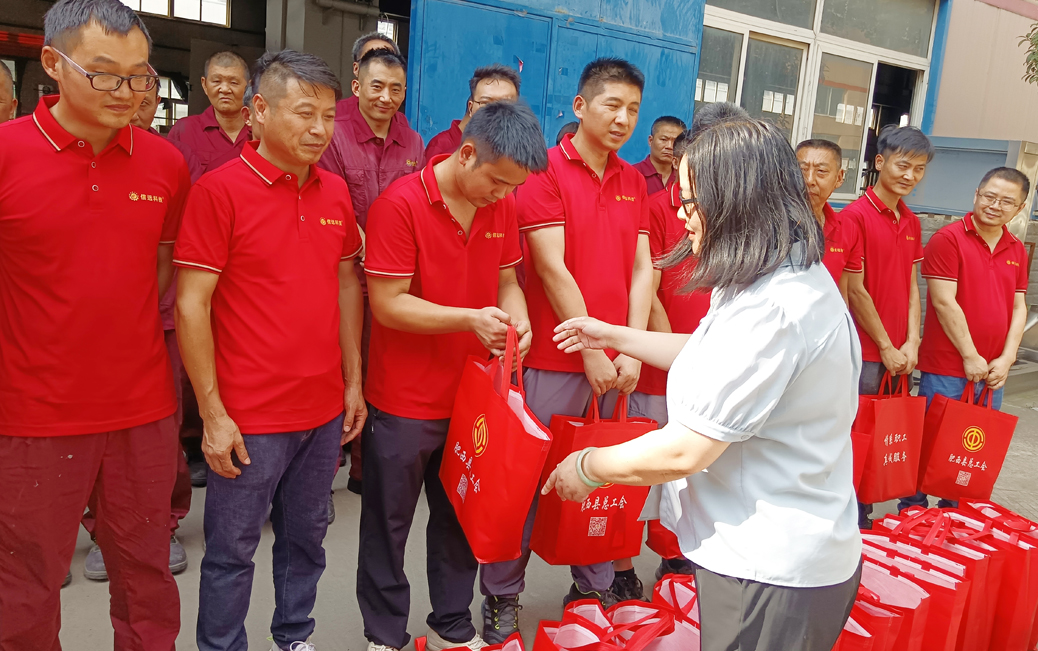 炎炎夏日送清涼,絲絲關(guān)懷暖人心。7月25日下午,肥西縣總工會黨組成員、經(jīng)審委主任李藝,在紫蓬鎮(zhèn)黨委副書記晏永花、鎮(zhèn)工會專職副主席黃莉等相關(guān)領(lǐng)導(dǎo)陪同下驅(qū)車來到安徽信遠(yuǎn)包裝科技有限公司。在信遠(yuǎn)公司董事長倪合青的陪同下,走進(jìn)各個(gè)生產(chǎn)車間對奮戰(zhàn)在高溫一線的信遠(yuǎn)職工進(jìn)行慰問,并送上防暑降溫慰問品,把組織的關(guān)心關(guān)愛送到基層一線,讓廣大職工充分感受到工會“娘家人”的溫馨關(guān)懷。